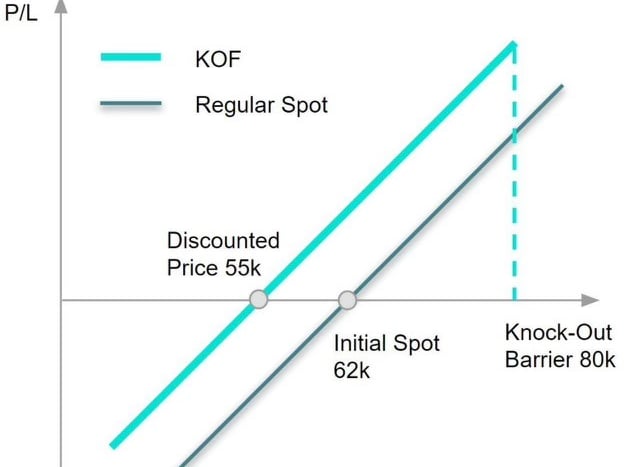 • With the spot currently at 62k USD, a BTC KOF allows you to buy BTC at 55k USD.